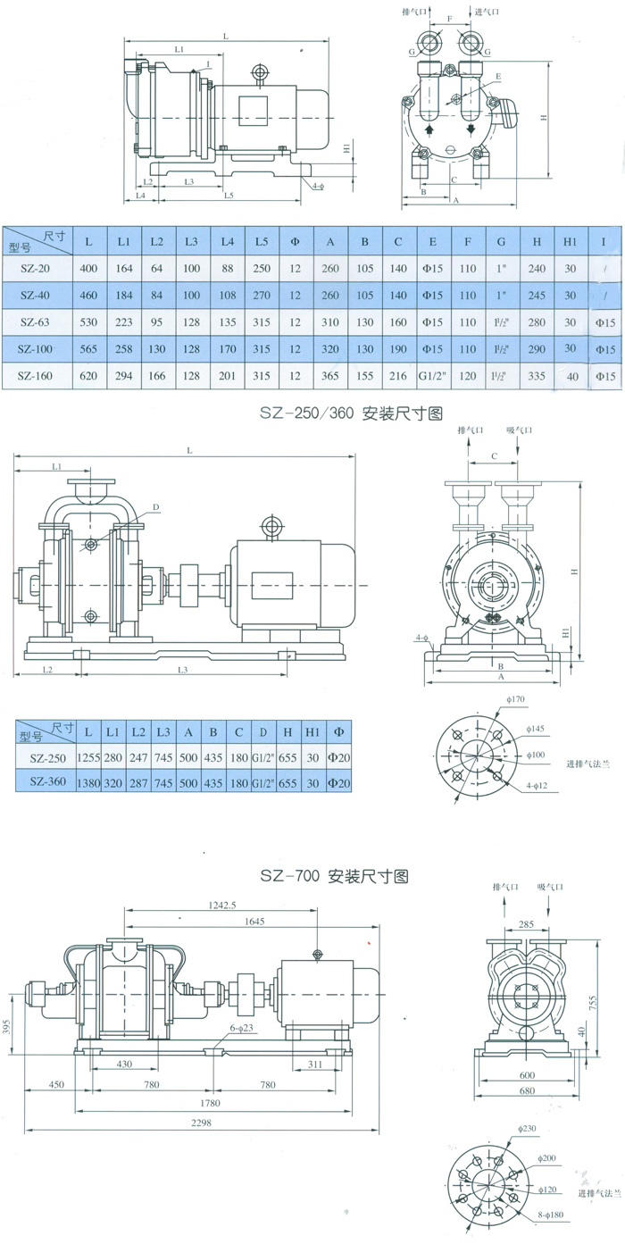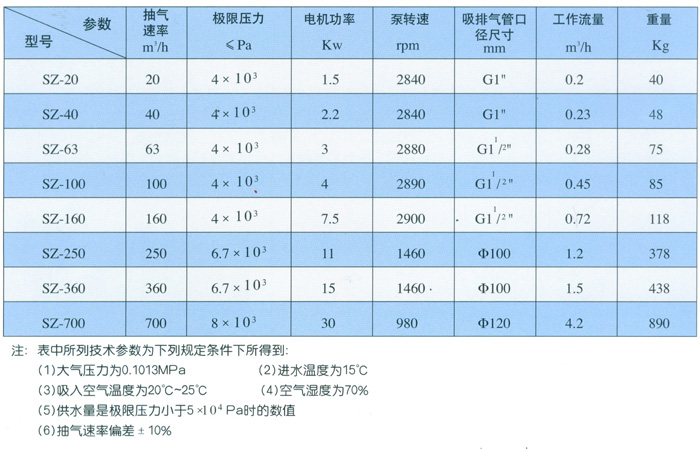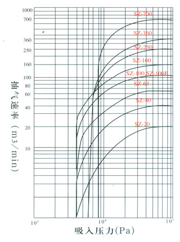 应用范围及特点 水环式真空泵,广泛适用于化工、石油、机械、轻工、医药、造纸、食品、动力、纺织等行业,用来抽吸空气或其他不溶水,不含固体颗粒,无腐蚀性的气体,以便在密闭容器中形成一定的真空度,常用于真空蒸发、真空浓缩,真空干燥,真空抽滤,真空脱气,真空送料等工艺过程。 当泵采用特殊材料制造时,允许抽除带有少量腐蚀性气体,采用防爆电机时,并遵守相应的安全规则下,可抽除一般的易燃易爆性气体,除SZ-700位填料密封外,其余均采用机械密封,具有结构紧凑,密封性好,使用可靠,装拆方便,维修简单等特点。 特性曲线